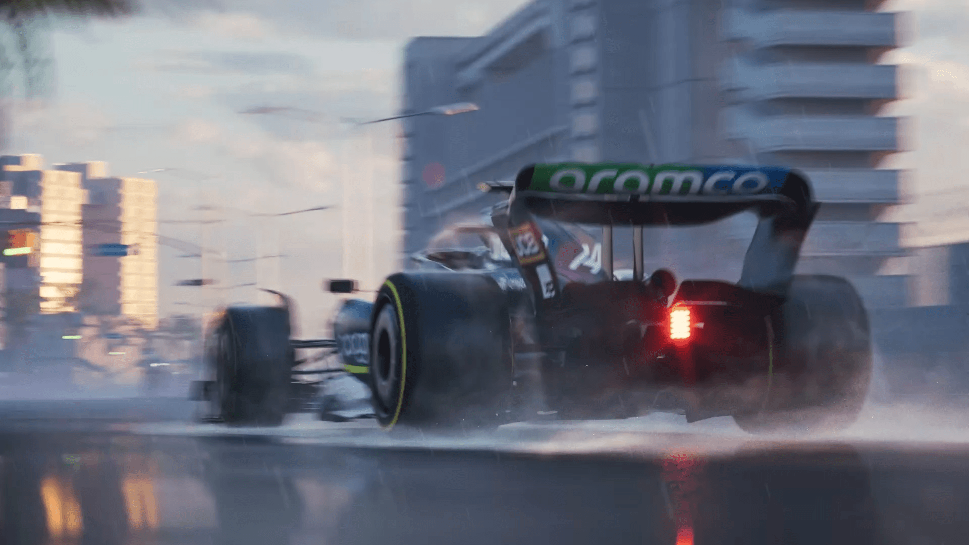 I was inspired by a particular shot in Apple TV's Friends and Neighbours where Jon Hamm's Maserati drifts around a corner, closes on the camera and races away. What if it was an F1 car? And really dig into the slow motion on the wheel with bits of rubber crumb and water spray flying off... challenge accepted.