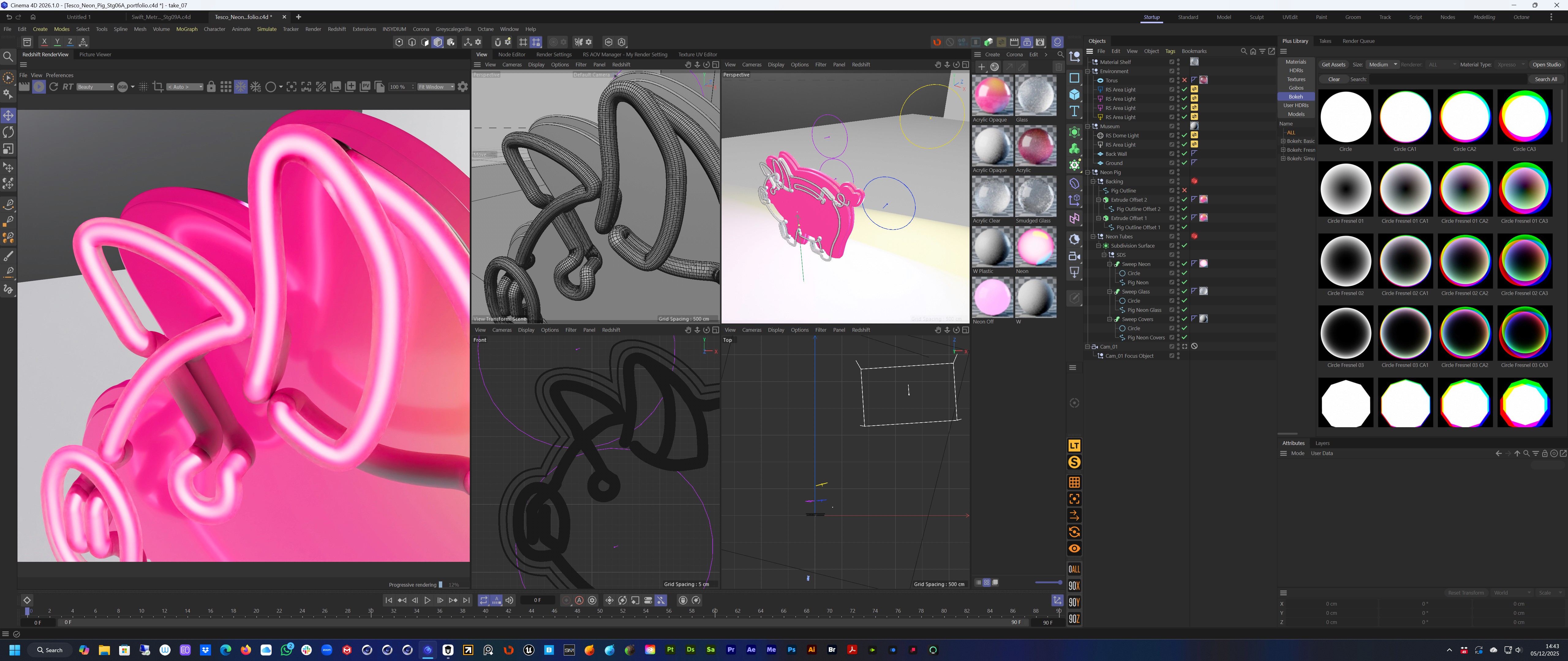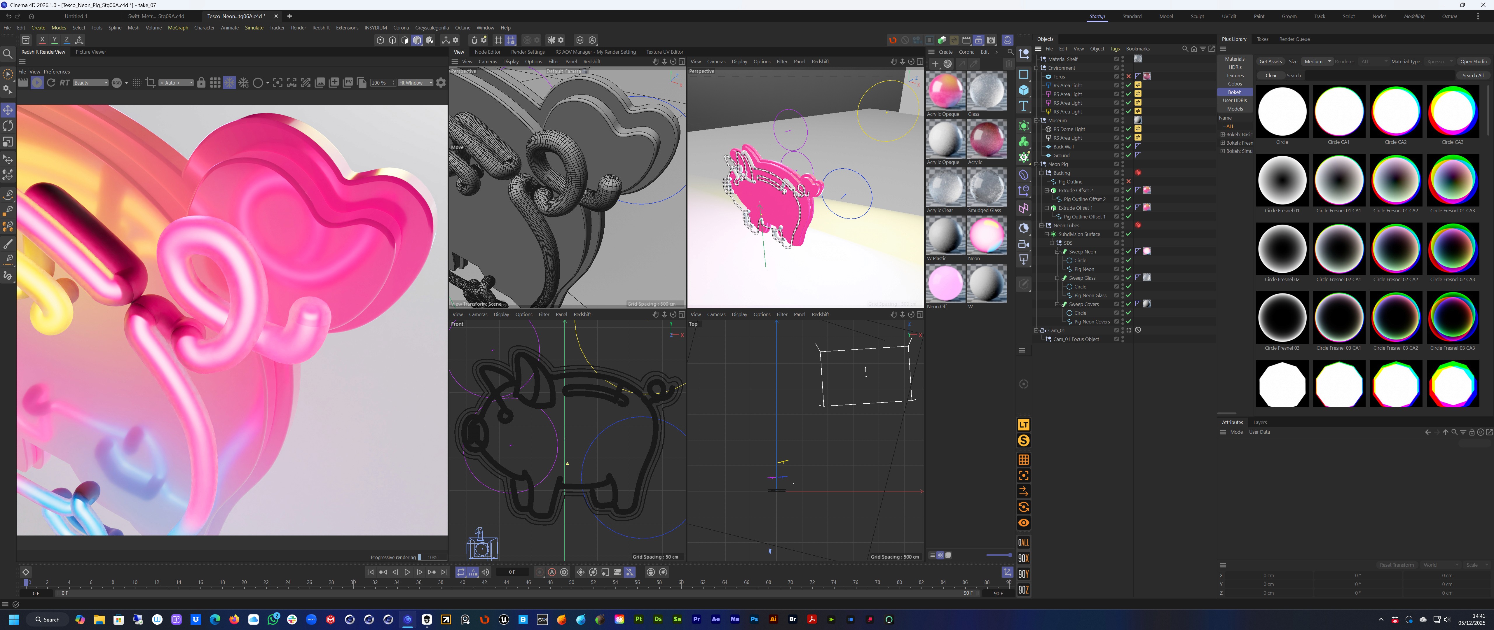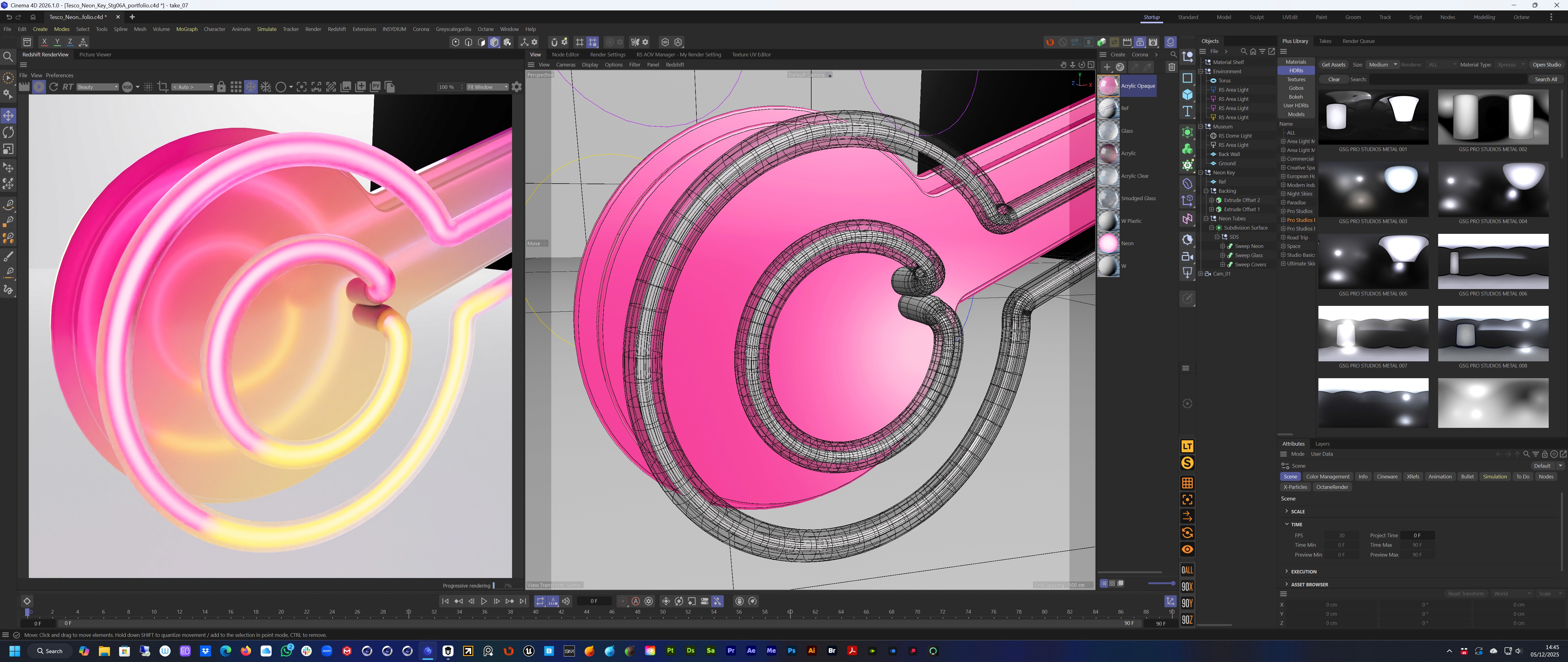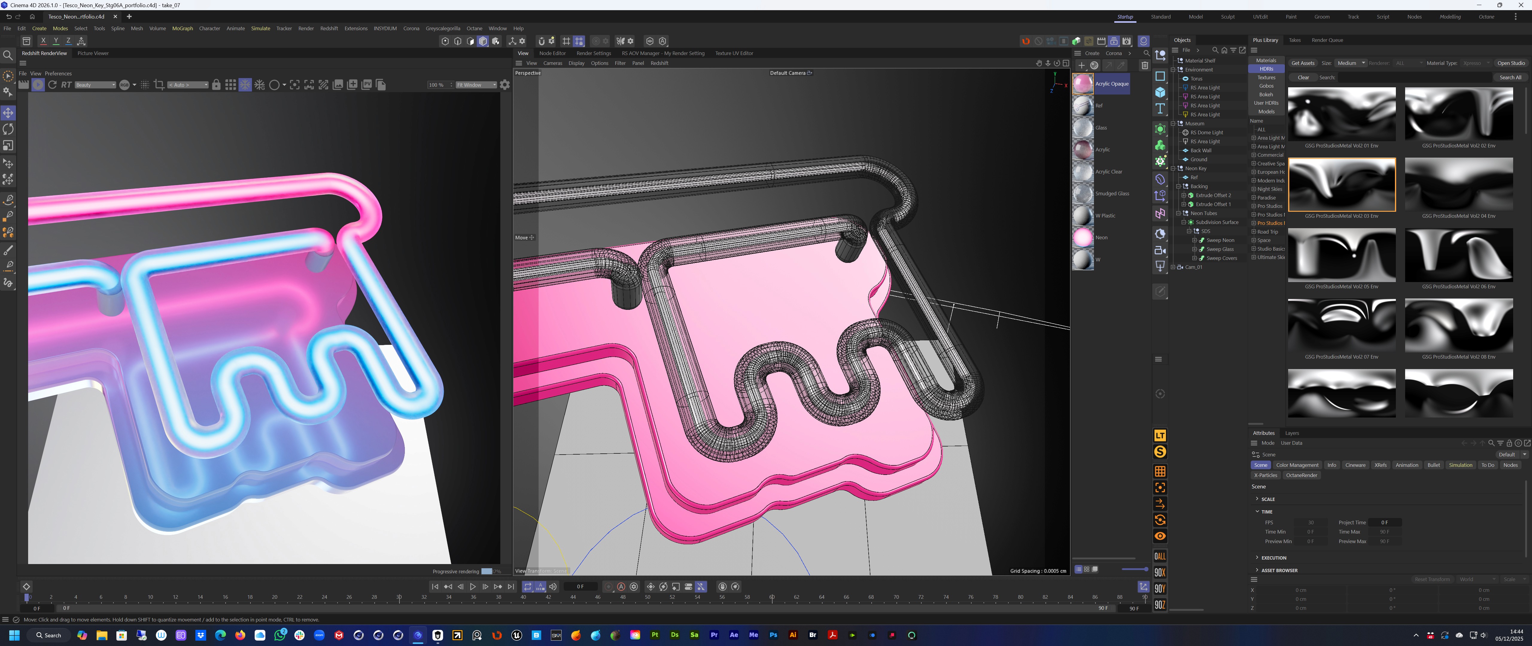 The concept and art direction came from the team at Mr D. I then built out the neon in 3D to create a balanced and graphic form that would sit squarely in the Tesco world. A key was also created with the same approach.